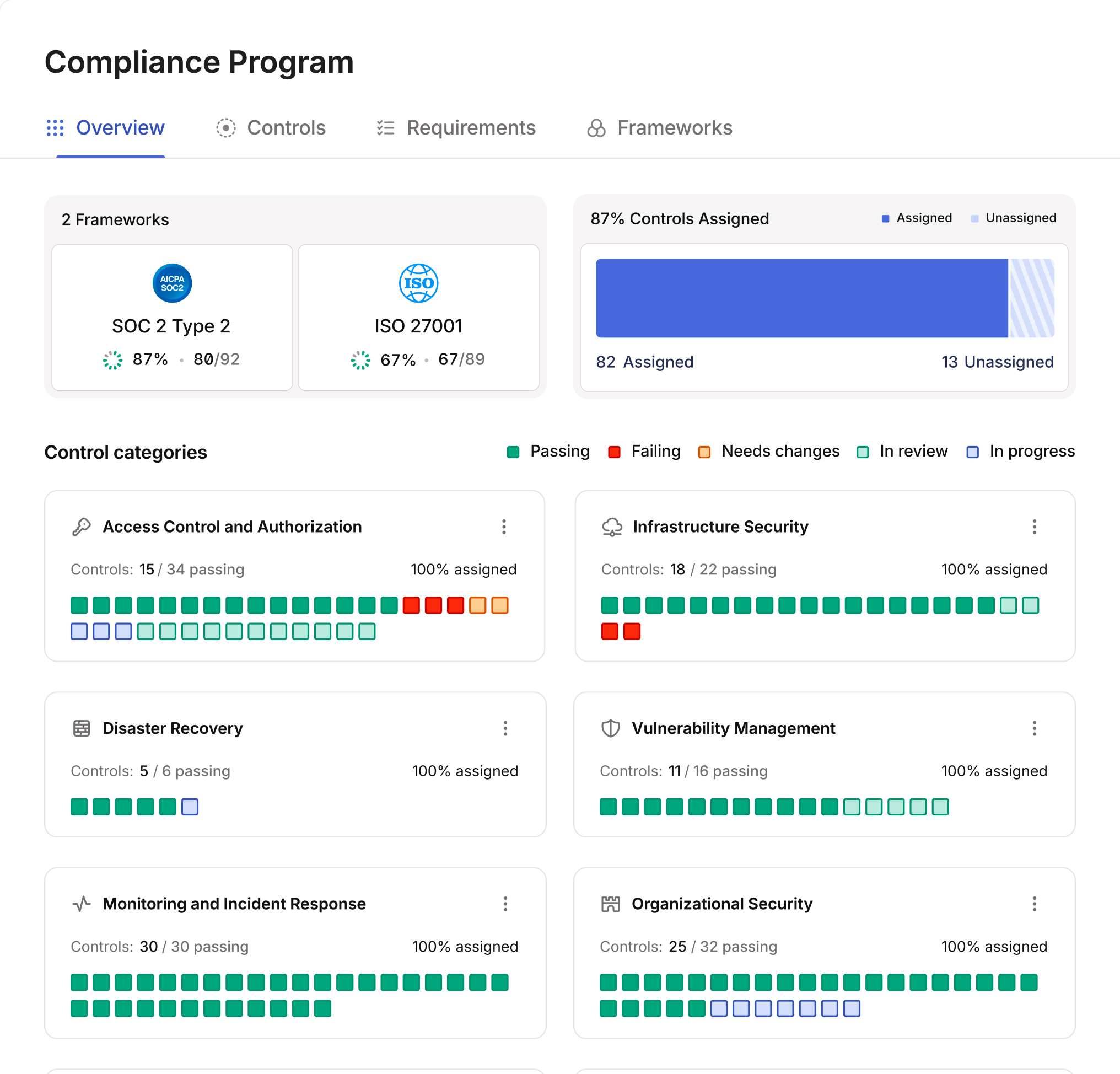 Whether you're navigating your first SOC 2 to win a deal or a growing company juggling multiple frameworks, we're here to help you get compliant and secure. We've been in your shoes!